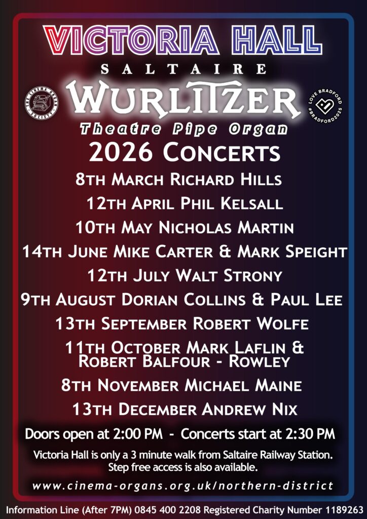 A video featuring the Saltaire Wurlitzer can be seen Here