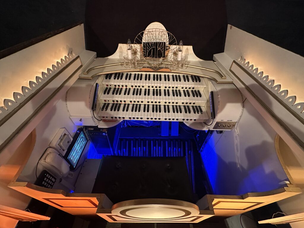 The organ is mounted on a lift which raises the ‘console’ through the stage centre during the interval. The organ is played at every film show during the seasons throughout the year plus for other events such as private parties, weddings and Silent film shows.